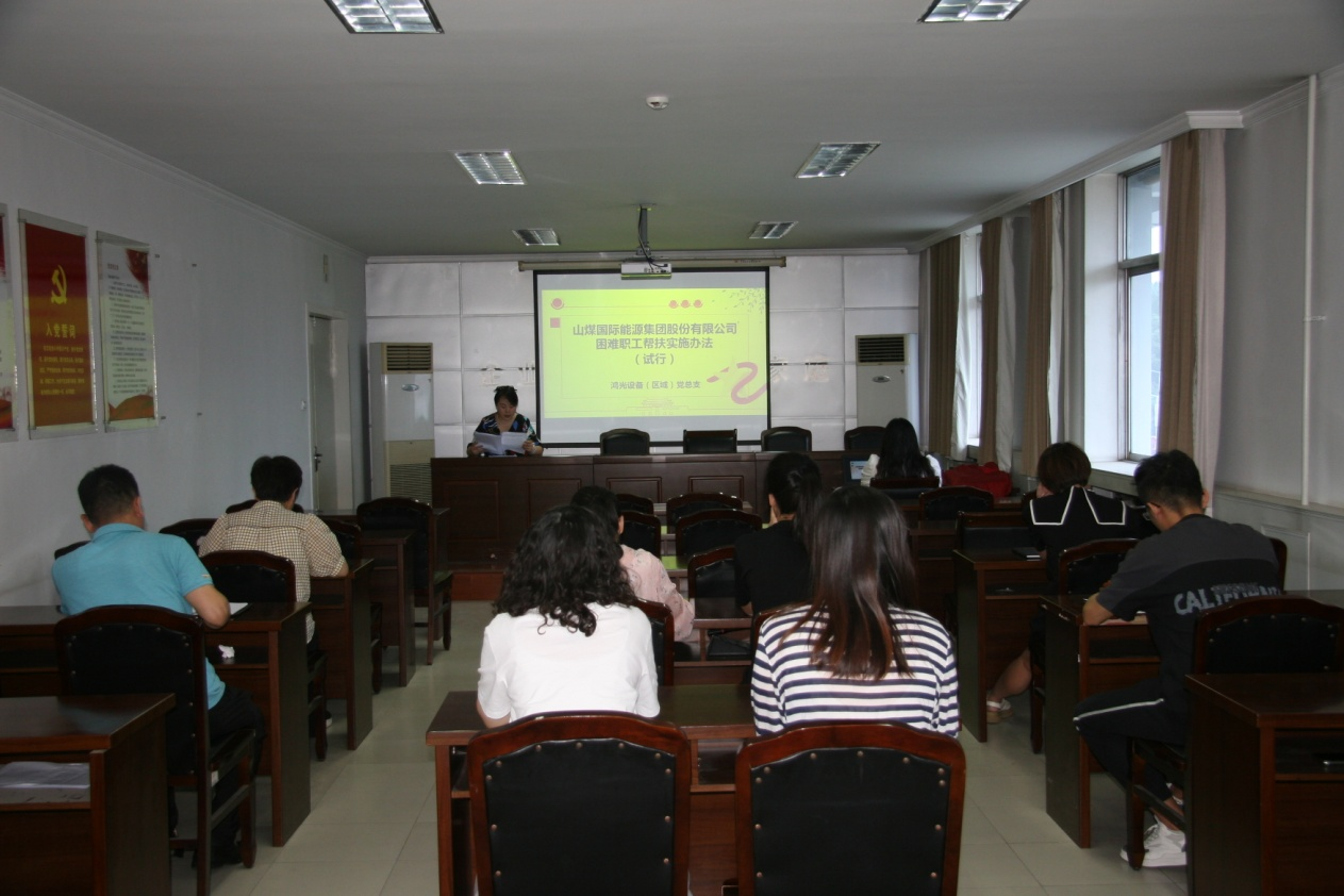 為進一步履行工會維護職工權益職能,做好困難職工的幫扶救助工作,切實踐行上級工會關于加強困難職工幫扶工作部署和要求,8月24日,晉城公司工會組織開展宣貫山煤國際困難職工幫扶實施辦法宣講專題學習會議,晉城公司本部全體職工參加會議。